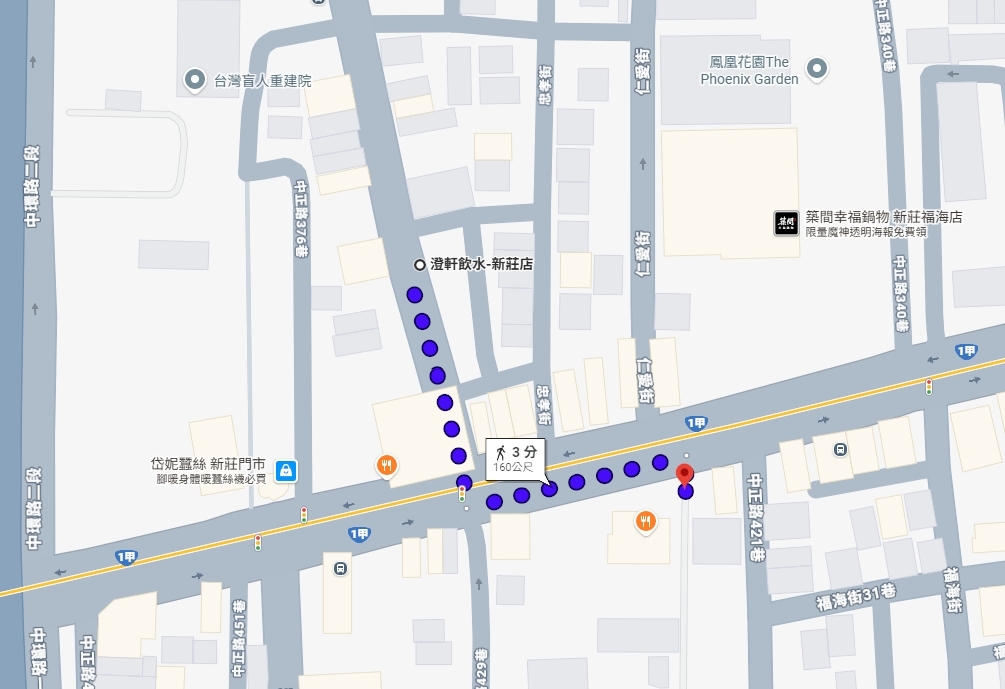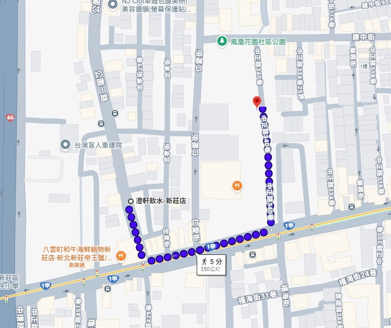 往南走中正路340巷朝中正路/台1甲線前進 140 公尺